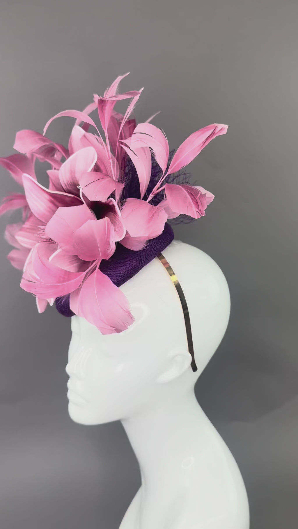 🎀 Hand made using elegant Millinery fabric with feathers.