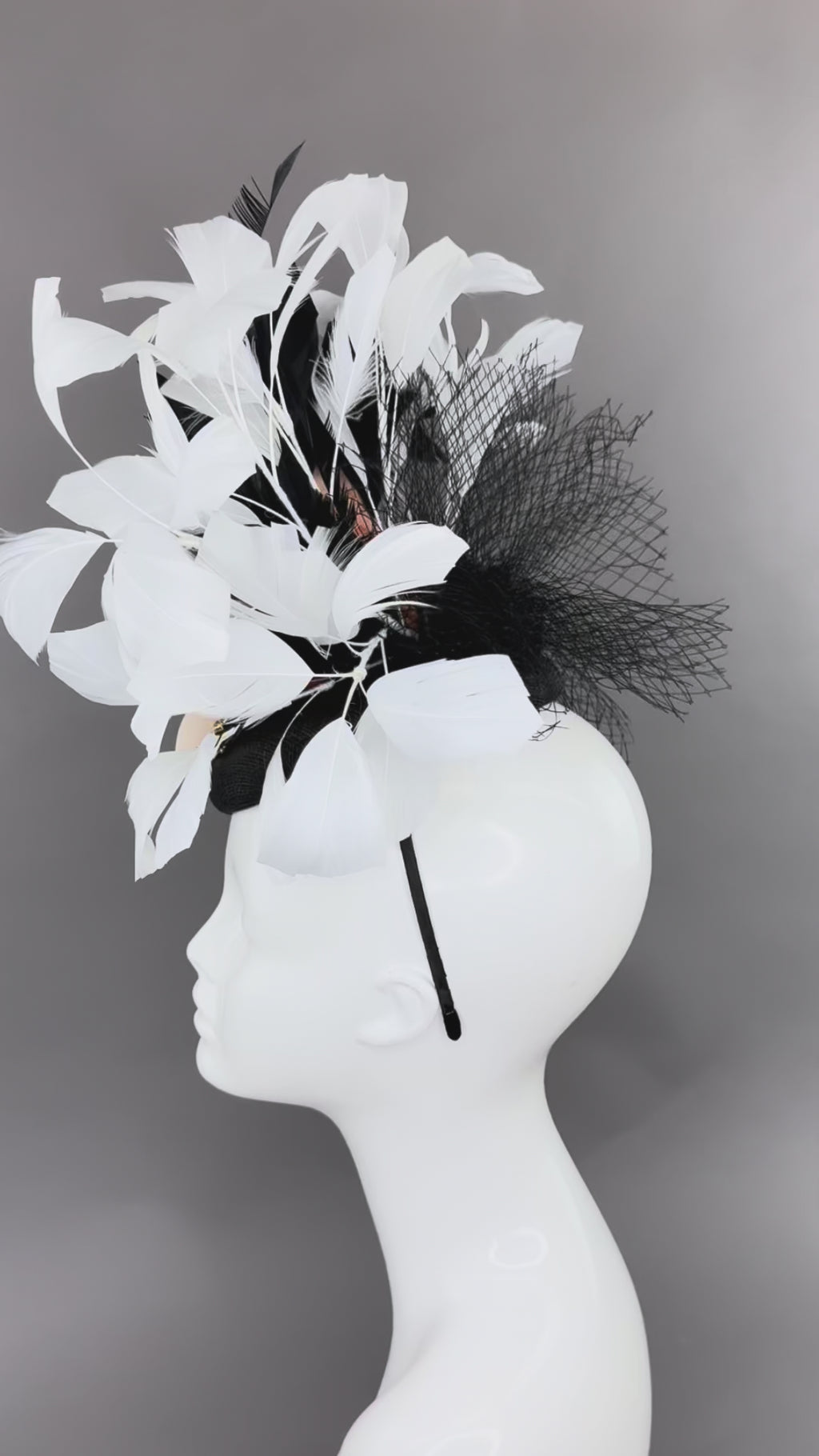 🎀 Hand made using elegant Millinery fabric with feathers.