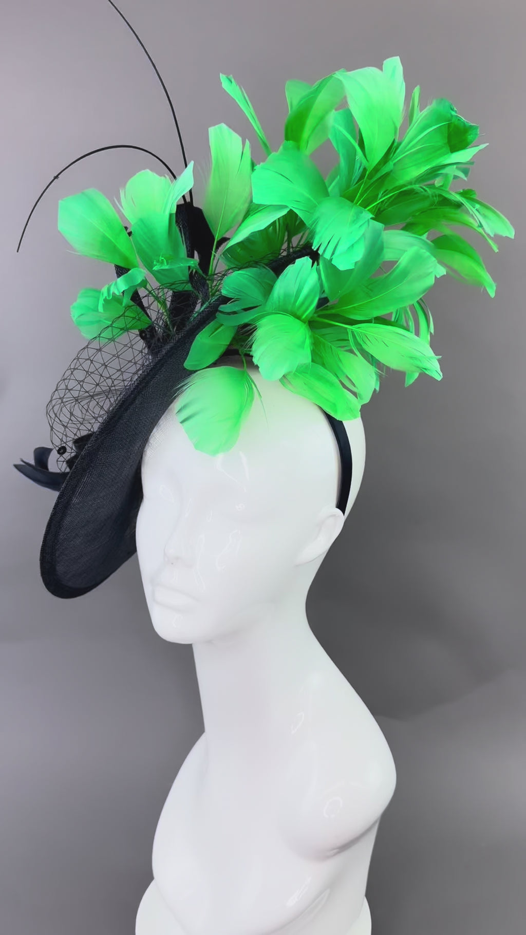 🎀 Hand made using elegant Millinery fabric with feathers.
