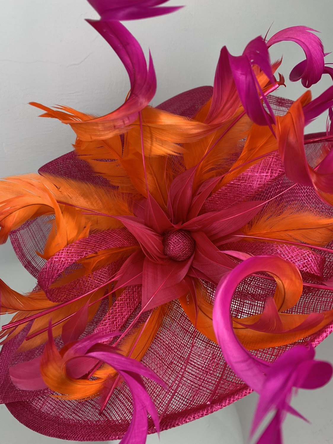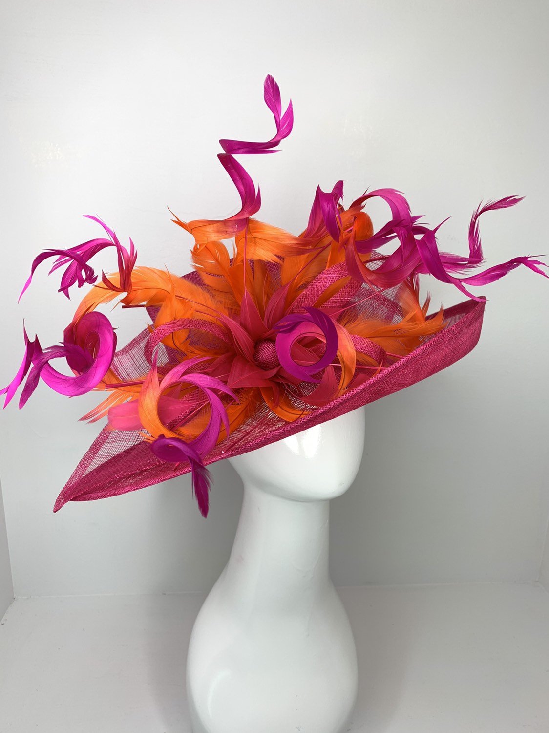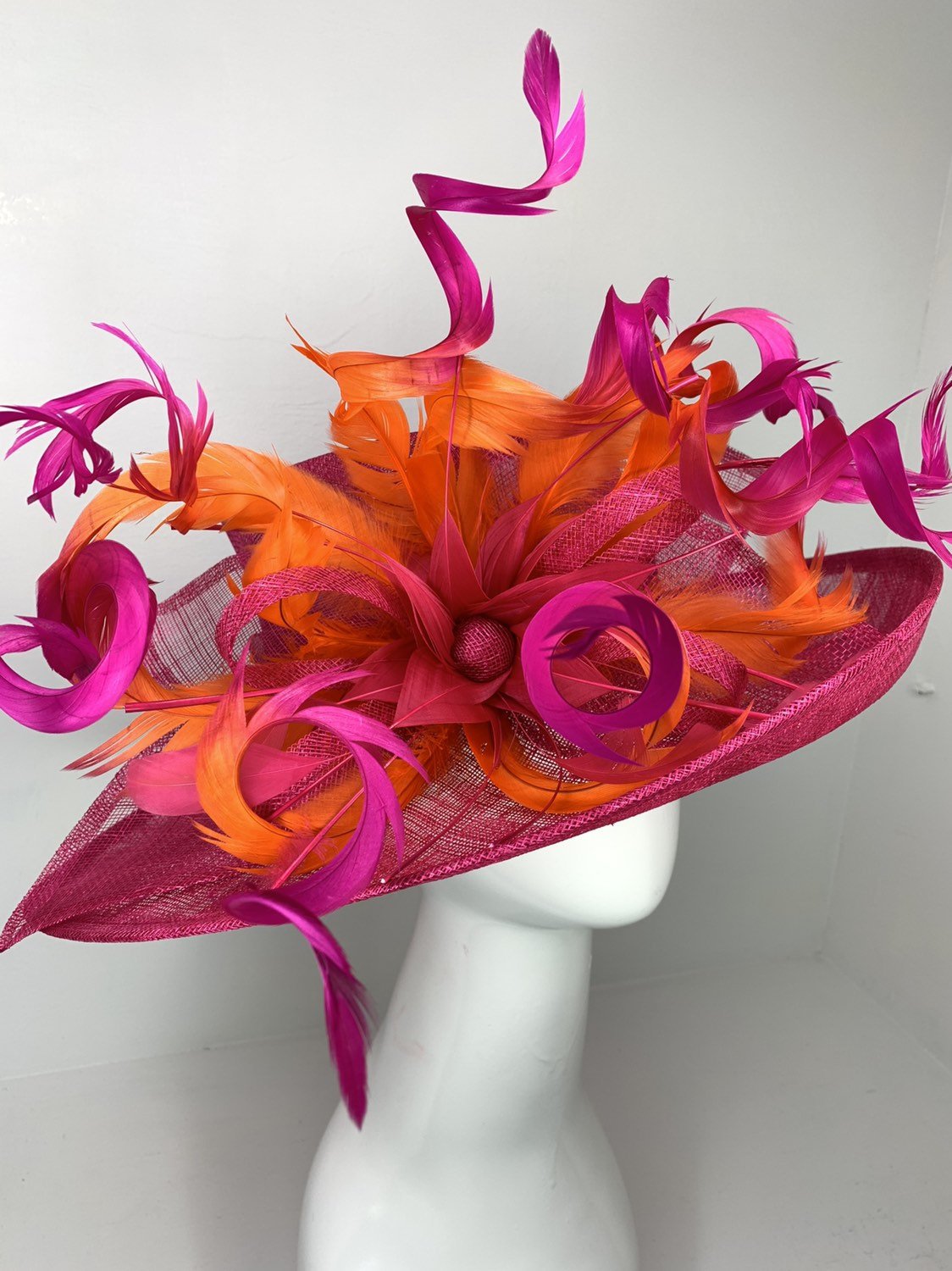 Fuchsia Pink & orange ombre feathers Kentucky Derby Hat