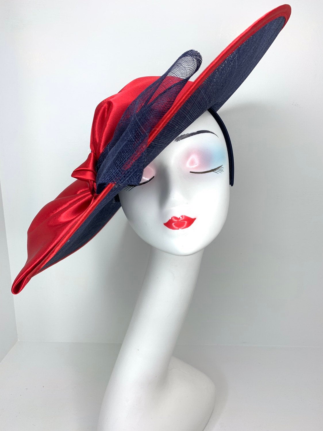 Sinamay Derby Hat with satin bow on a satin headband is perfect for the Kentucky Derby, Easter, Mother's Day Tea, High Tea, Wedding, or any special occasion.