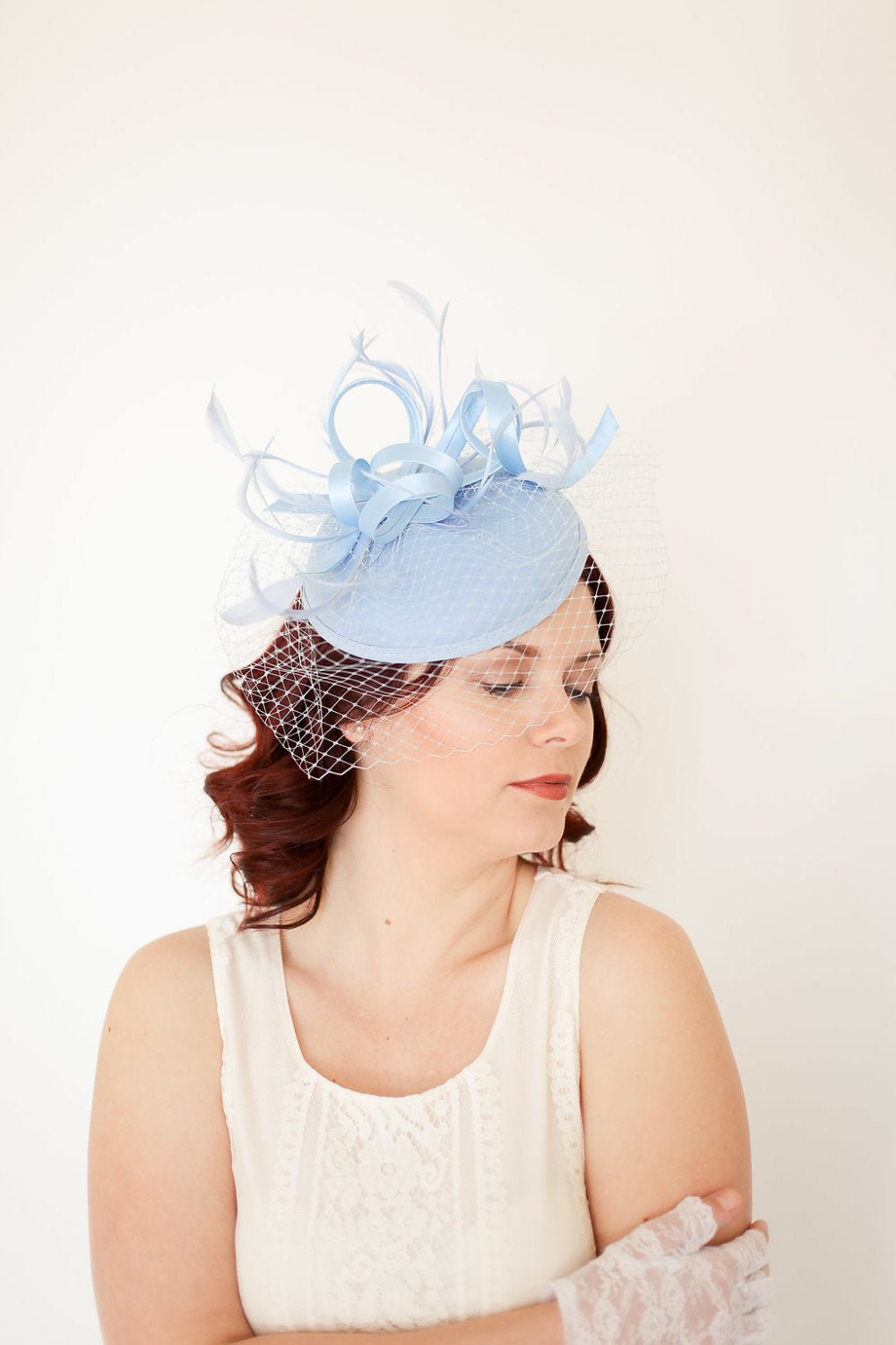 Sinamay Fascinator with feathers & mesh veil is a classic perfect for the Kentucky Derby, Church, Wedding, Bridal Shower, Wedding or tea party