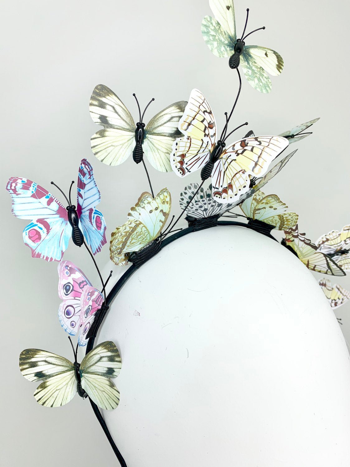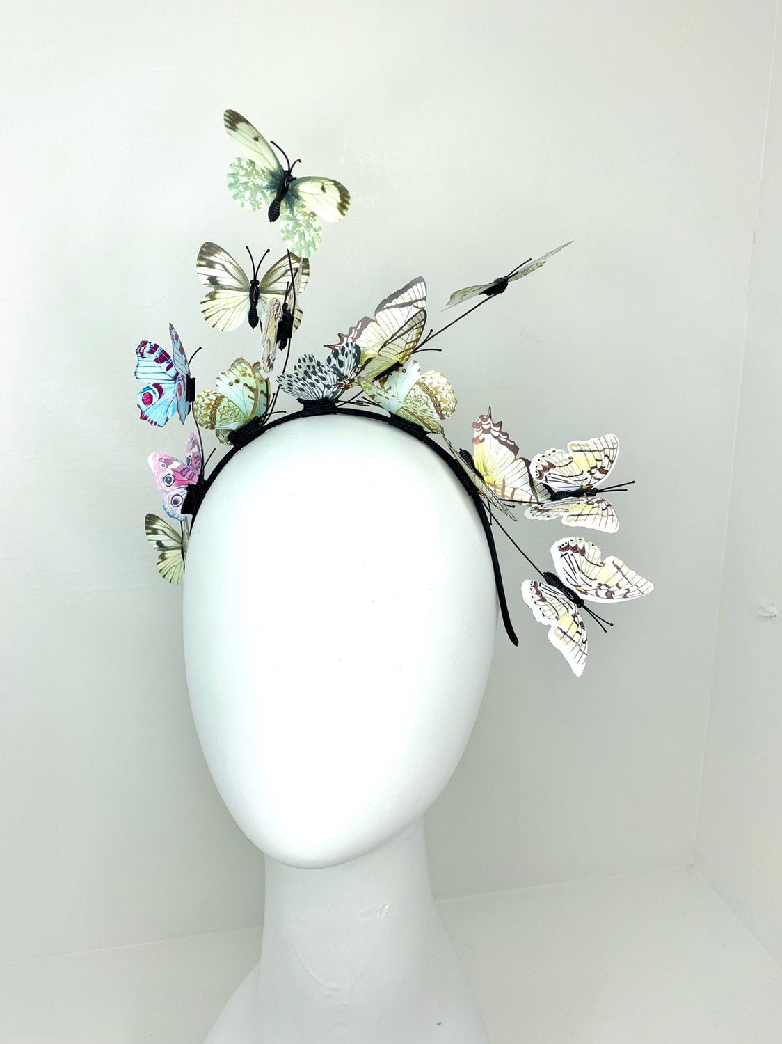 Shades of green and blue butterfly Fascinator on headband