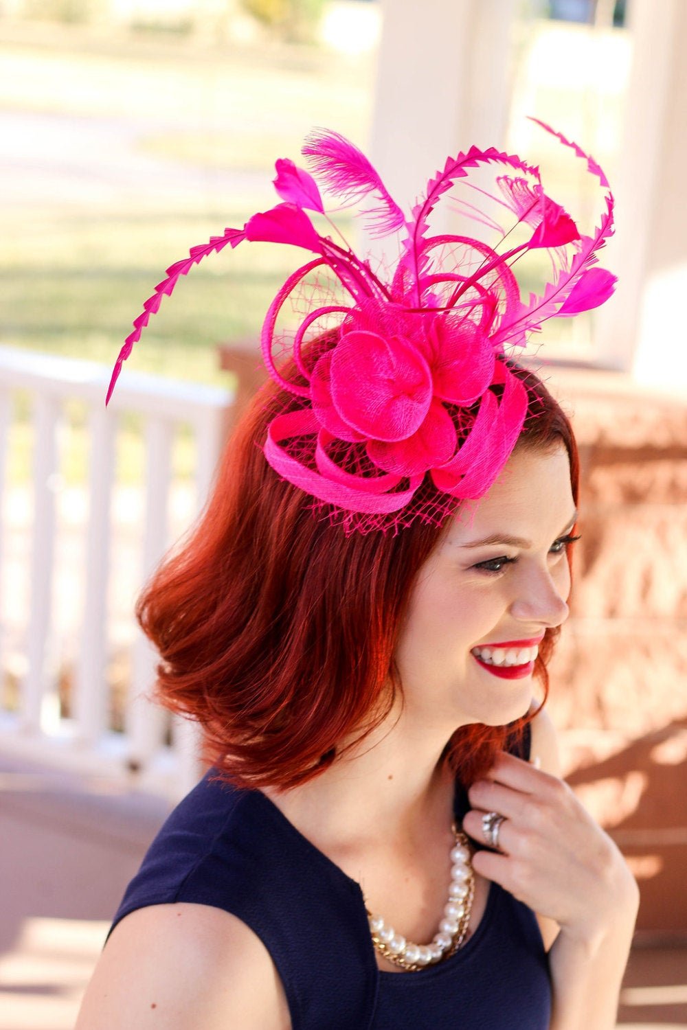 The Ellie Hot Pink Fascinator, Women's Tea Party Hat, Church Hat, Derby Hat, Fancy Hat, Bachelorette Hat, Tea Party Hat, wedding hat